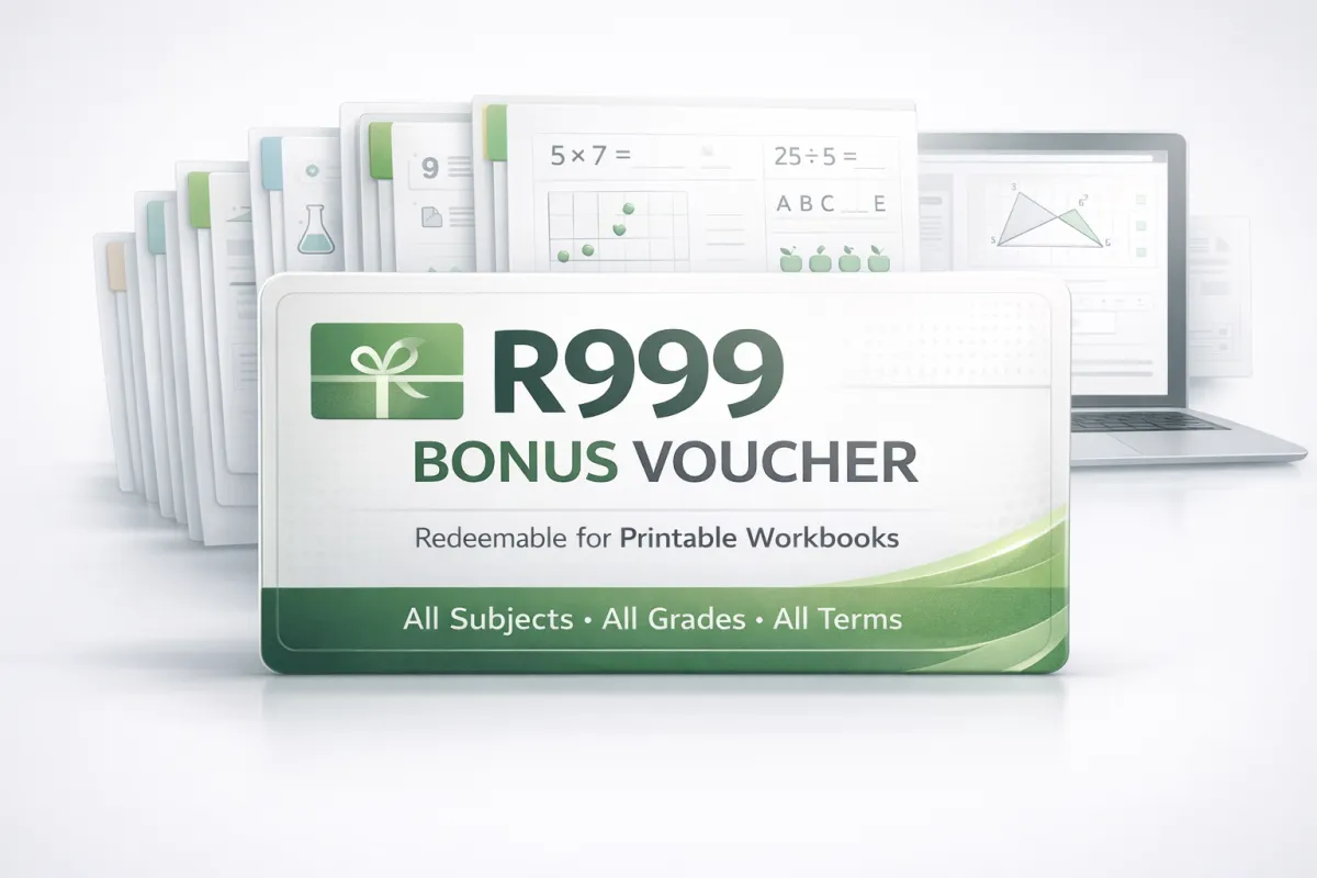 We have got printable workbooks covering all terms for all subjects and grades, get a R999 voucher for FREE when you join iRainbow